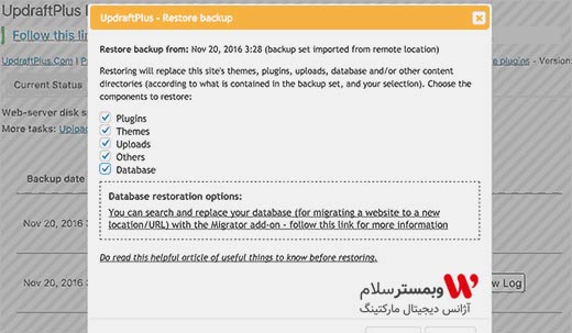 بازگرداندن محتوای پشتیبان وردپرس با UpdraftPlus