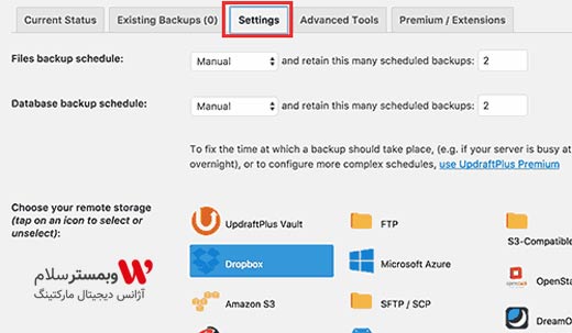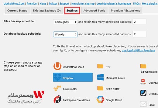 ایجاد پشتیبان وردپرس با UpdraftPlus