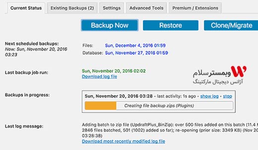 آموزش تصویری بهترین افزونه بک آپ گیری وردپرس