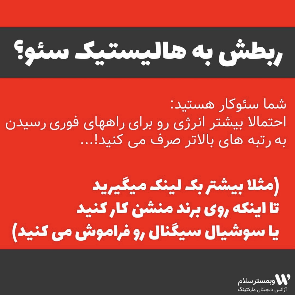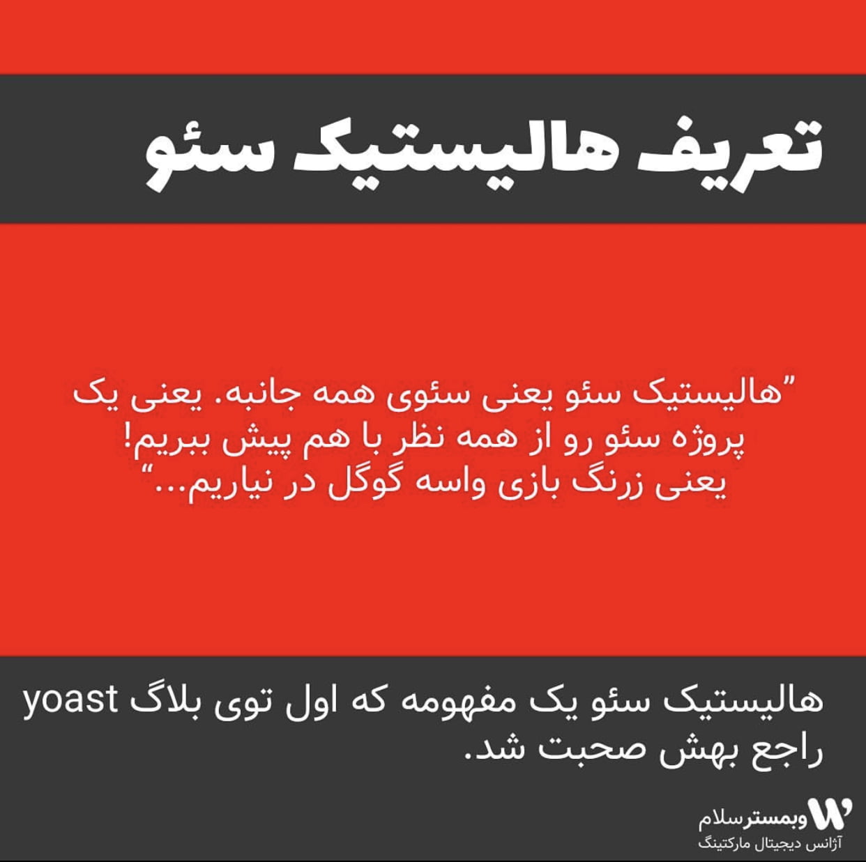 این پست اسلایدی اینستاگرامی در پیج وبمسترسلام توضیح ساده ایست در خصوص هالستیک سئو :