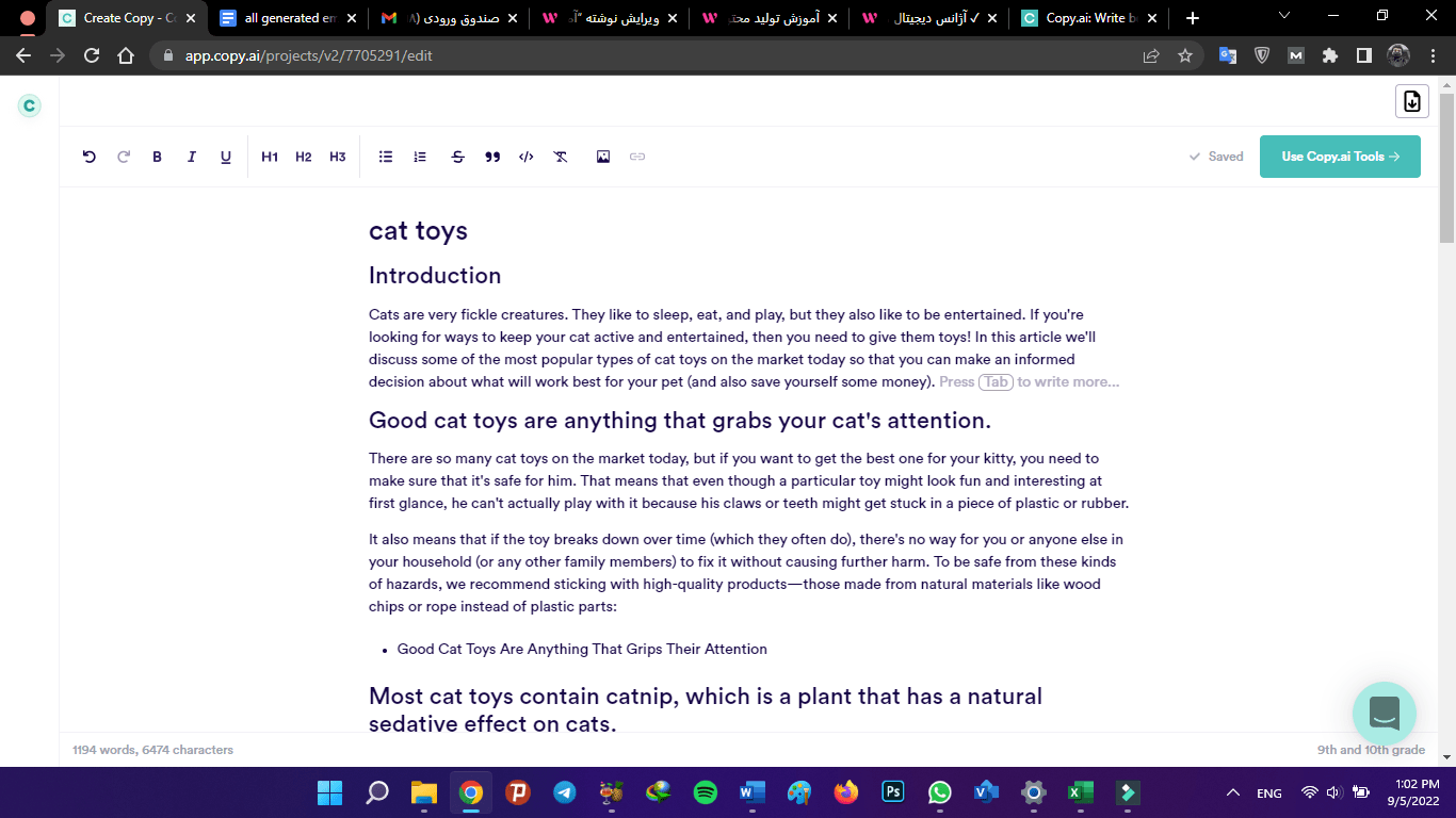 در مرحله اخر هر جایی که حس کردید نیاز است تا دوباره بازنویسی شود می توانید آن قسمت را هایلایت کنید و گزینه rewrite را بزنید و هرجا که حس کردید بهتر است محتوای بیشتری داشته باشد با کلید Tab در کیبورد خود می توانید محتوای آن قسمت را زیاد تر کنید.
