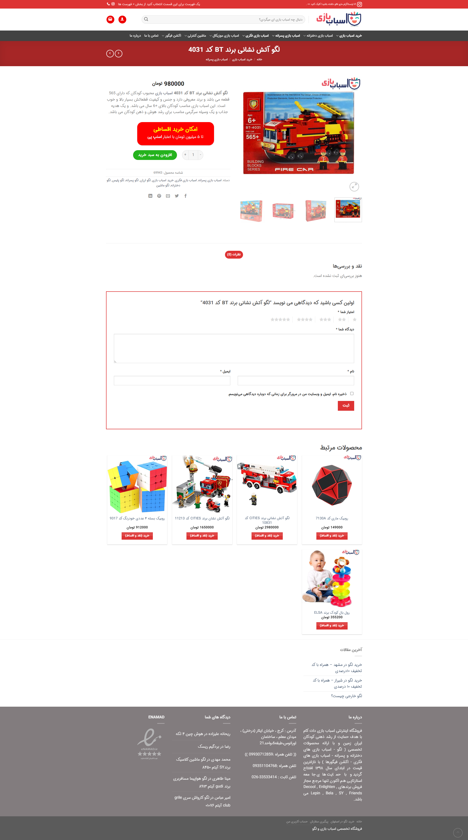 فروشگاه اینترنتی اسباب بازی دات کام با هدف حمایت از رشد ذهنی کودکان ایران زمین و با ارائه محصولات تخصصی ( لگو – اسباب بازی های دخترانه و پسرانه – اسباب بازی های فکری – اکشن فیگورها ) با نازلترین قیمت در ابتدای سال ۱۳۹۸ افتتاح گردید و با حمایت های جامعه استارتاپی هم اکنون تنها مرجع مجاز فروش برندهای Decool , Enlighten , Lepin , Bela , SY , Friends می باشد.