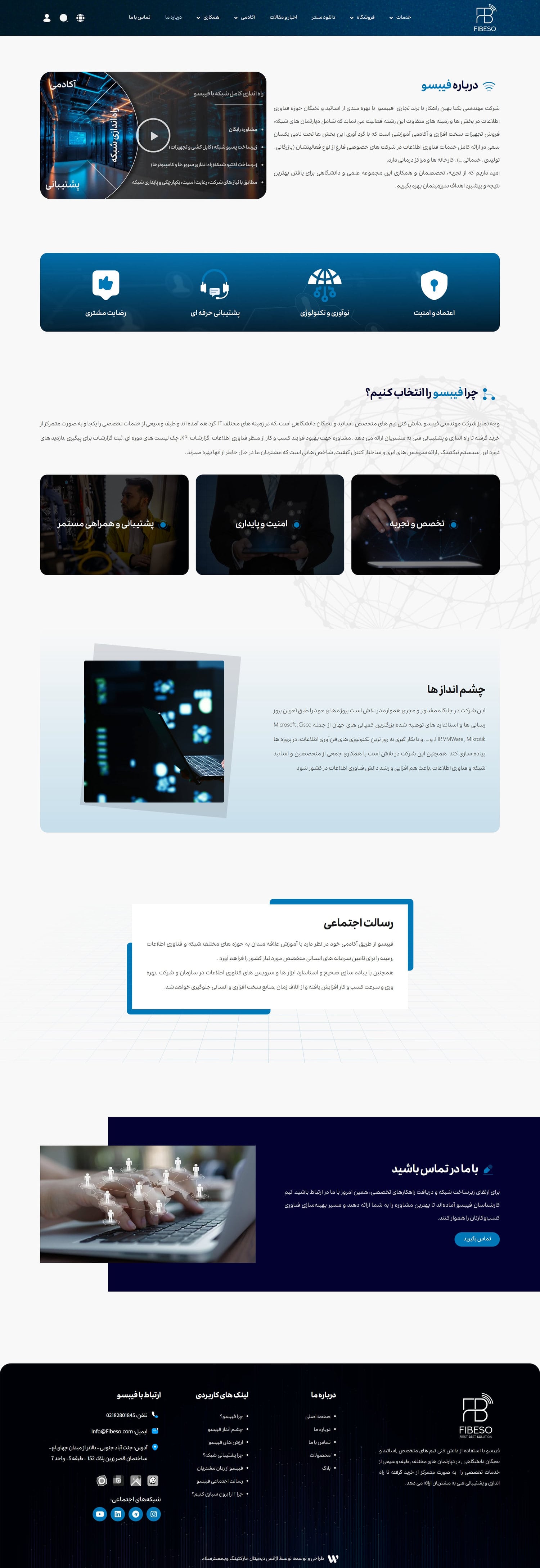 فیبسو با استفاده از دانش فنی تیم های متخصص ,اساتید و نخبگان دانشگاهی , در دپارتمان های مختلف , طیف وسیعی از خدمات تخصصی را به صورت متمرکز از خرید گرفته تا راه اندازی و پشتیبانی فنی به مشتریان ارائه می دهد .