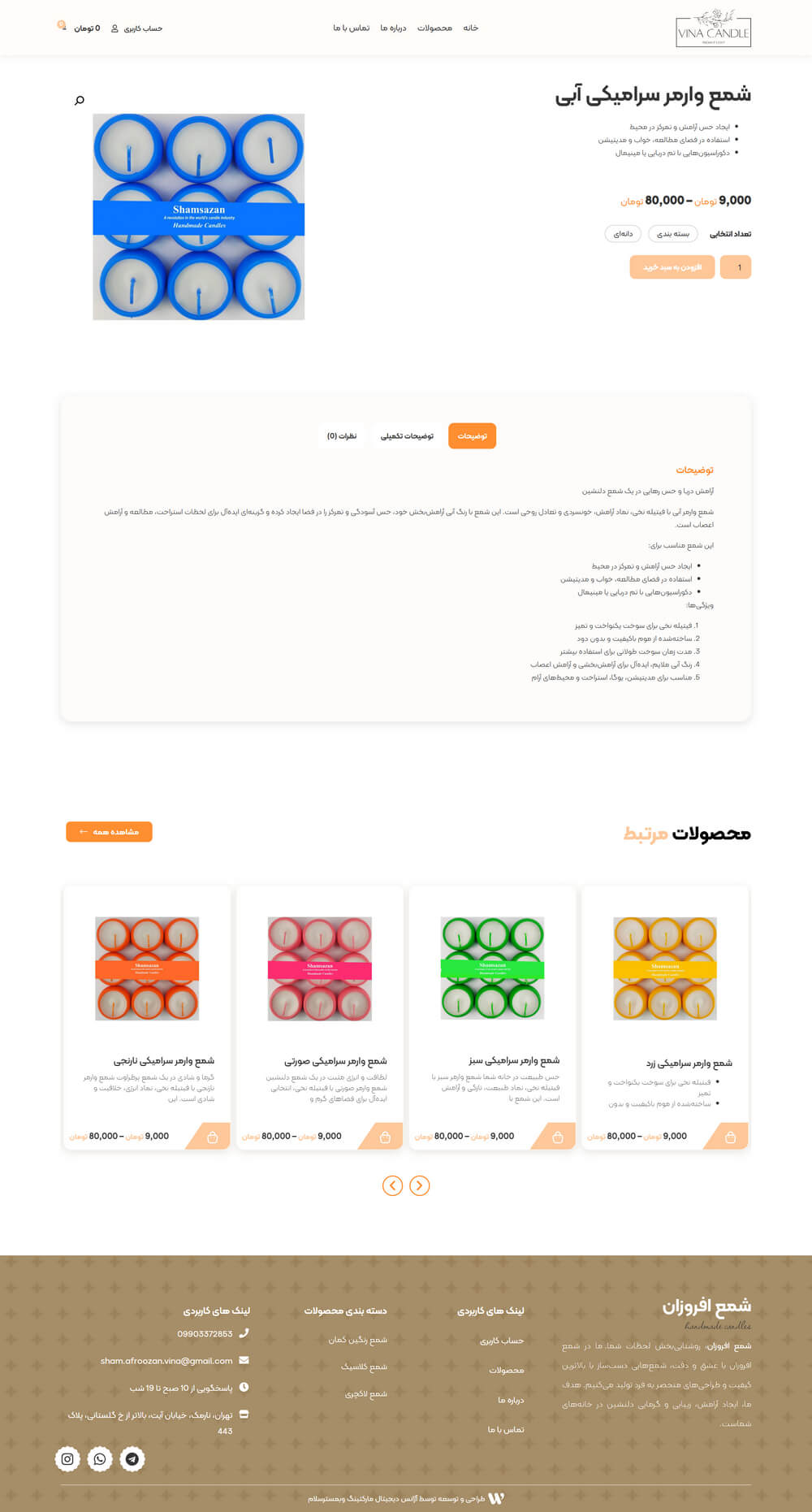 شمع افروزان، روشناییبخش لحظات شما. ما در شمع افروزان با عشق و دقت، شمعهایی دستساز با بالاترین کیفیت و طراحیهای منحصر به فرد تولید میکنیم. هدف ما، ایجاد آرامش، زیبایی و گرمایی دلنشین در خانههای شماست.